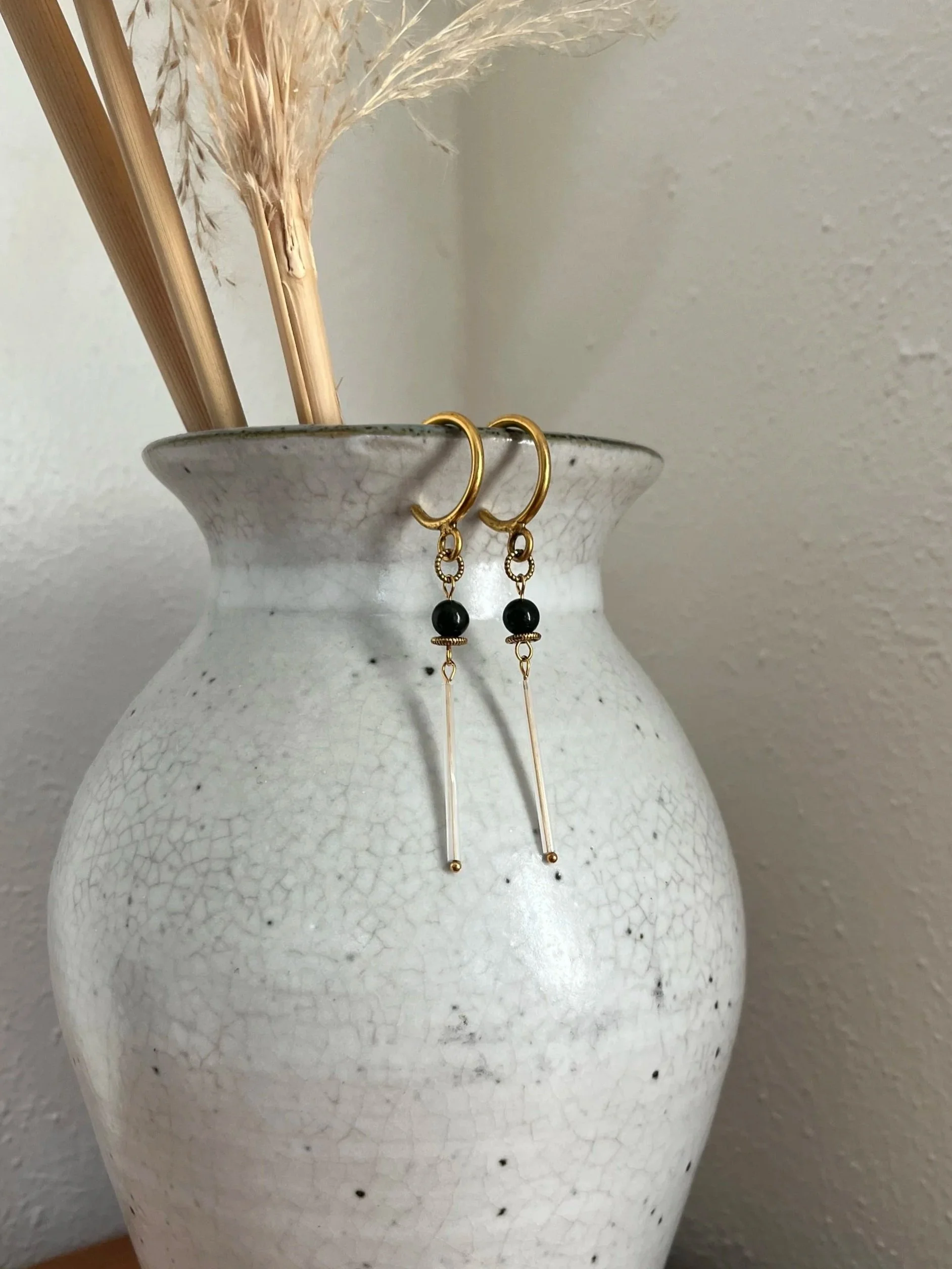The materials I use in my jewelry include: gold & silver plated metals mostly, with a small selection of 14k gold-filled and .925 sterling silver at my pop-up events. If you have sensitive ears, I recommend you opt for gold-filled or sterling silver pieces. Some of the styles on the website are hybrids where the hook portion has been swapped to the higher quality metal.